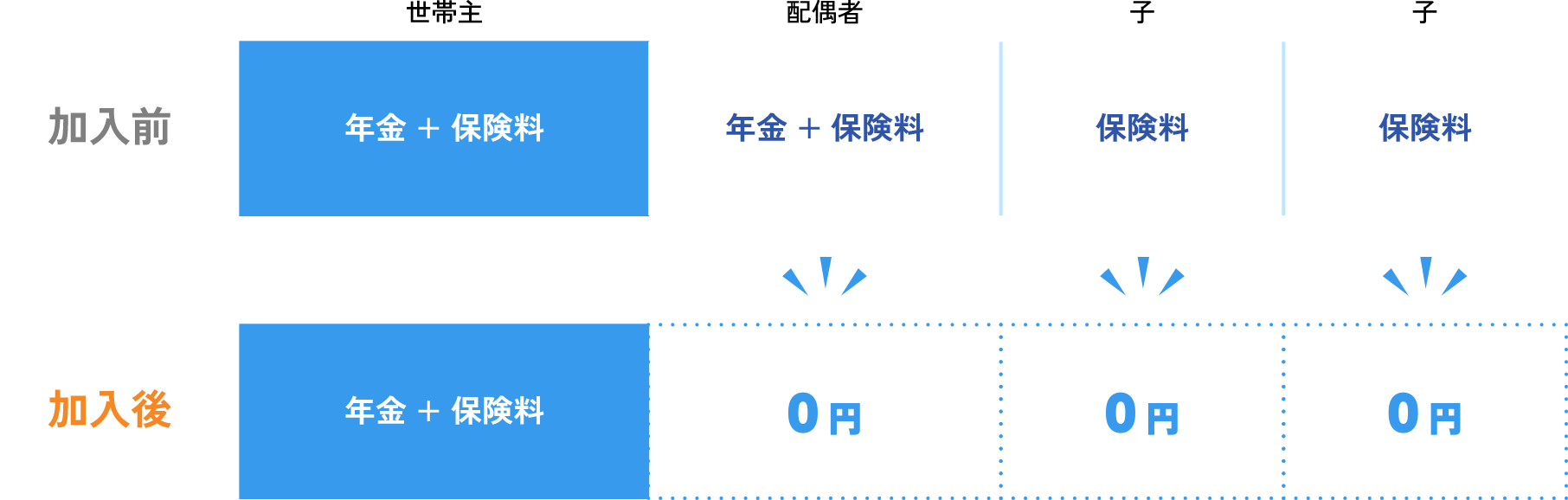 ご家族分の「年金+保険料」も0円になります。